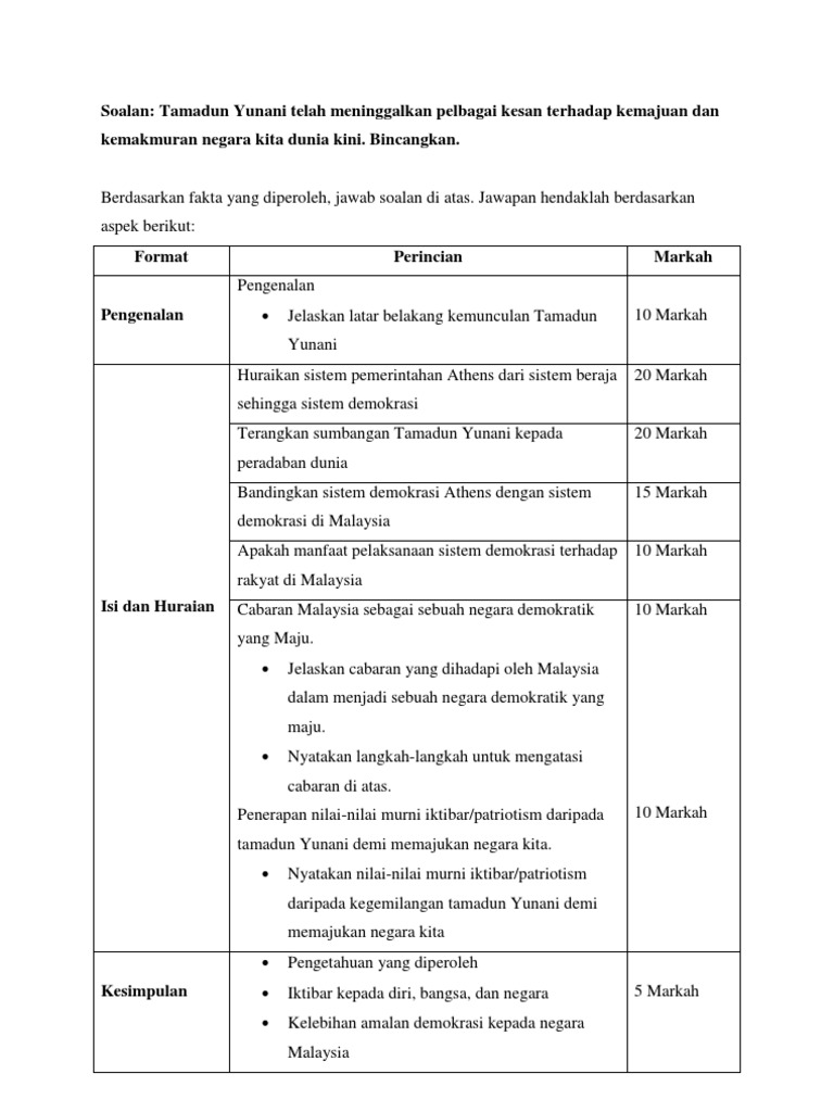 Format aspek perincian markah penuh pengenalan memahami latar belakang gerakan nasionalisme di tanah melayu sehingga perang dunia kedua 1. Kegagalan rundingan menyebabkan portugis menyerang melaka sebanyak 3 kali iaitu pada 25.07.1511, 10.08.1511 dan 24.08.1511. Dalam negara itu juga, perilaku suatu bangsa harus diatur atau dalam hal ini bangsa harus tunduk pada aturan yang berlaku di negara yang ditempatinya. Melatih jiwa leadership dalam memimpin diri sendiri maupun kelompok. …kepada penduduk tempatan supaya mampu berkerajaan sendiri.