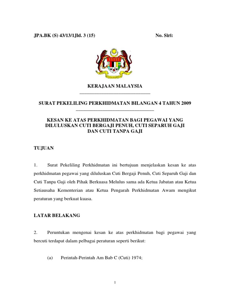 Cuti Tanpa Rekod from imgv2-2-f.scribdassets.com Jpa s 223 8 3 3 sk 4 11 bertarikh 26 julai 1994 pekeliling perkhidmatan bil. Panduan permohonan cuti tanpa rekod panduan permohonan cuti. Ctr bagi pegawai yang dilantik sebagai jurulatih plkn. Cuti tanpa rekod pesta kaamatan. Archive for the 'perintah am bab c' category. 0 ratings0% found this document useful (0 votes). Astro awani 5 years ago. Nota2u on 5 december 2008.